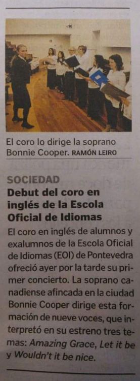 La soprano actuó en Navidad en San Bartolomé. De Canadá a Pontevedra, esta profesora de canto dice que la música es su vida.